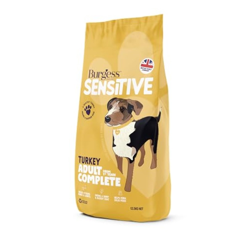 Give your adult dog the best with Burgess Sensitive Hypoallergenic Dog Food featuring British Turkey and Rice. This dry dog food is specially crafted to support a healthy tummy, a shiny coat, and solid poos. Made without common allergens, it's perfect for dogs with sensitivities. Penny, a playful dog, found relief with Sensitive, enjoying firm poos and improved digestion. Choose Burgess Sensitive for a happy, healthy dog!