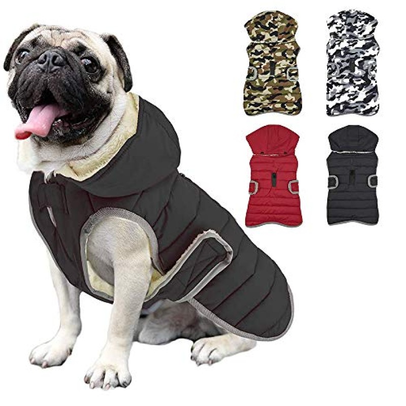 Etechydra Waterproof Dog Jacket with Detachable Hat and Fleece Lining