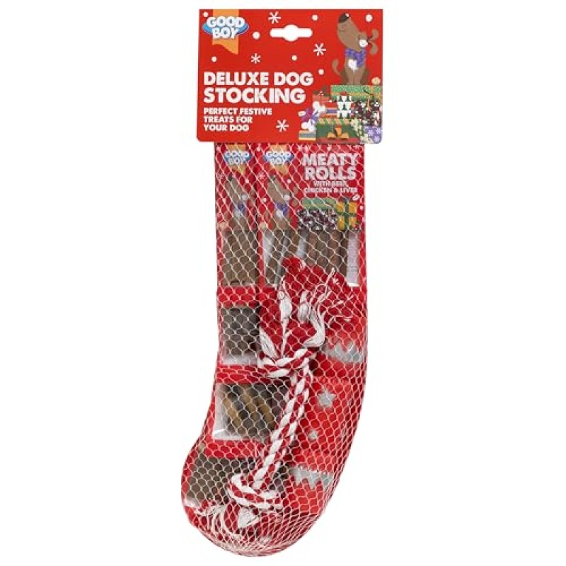 Good Boy Christmas Deluxe Dog Stocking with Treats and Toys