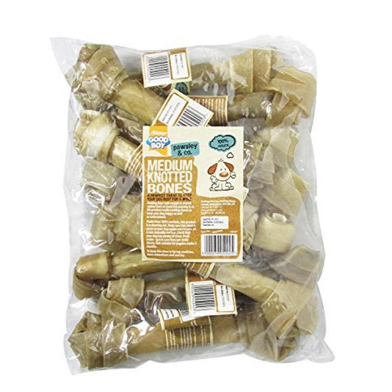 Good Boy Medium Rawhide Knotted Bones – 100% Natural Hide Chews