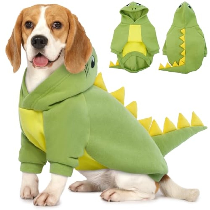 Lelepet Halloween Dog Dinosaur Costume with Fleece Hoodie for Large Dogs