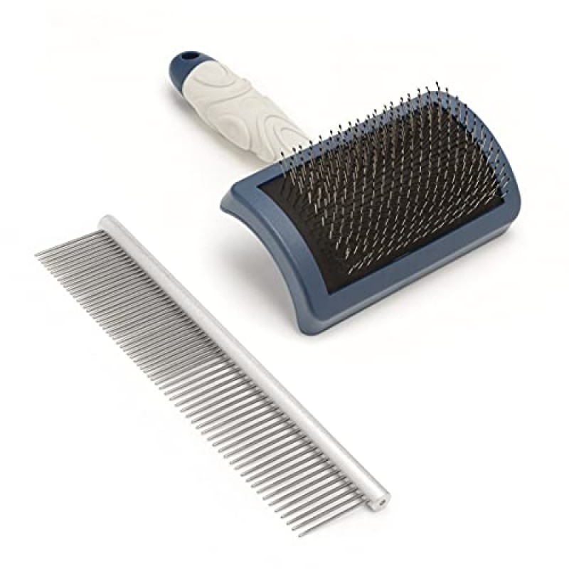 Groom your puppy with gentle care using this thoughtful set designed especially for doodle breeds. The stainless steel comb features tapered pins that glide smoothly through your pup’s coat, reaching deep layers without pulling or snagging, helping to prevent the formation of mats. Alongside, the hard pin slicker brush with protective ball tips tenderly reaches the undercoat while safeguarding sensitive skin. An ergonomic, non-slip handle ensures comfort and ease for you during those daily grooming moments, turning a practical chore into a warm bonding ritual. Just a few minutes each day keeps your little one's coat soft, tangle-free, and ready to shine between visits to the groomer, nurturing both their wellbeing and your connection.