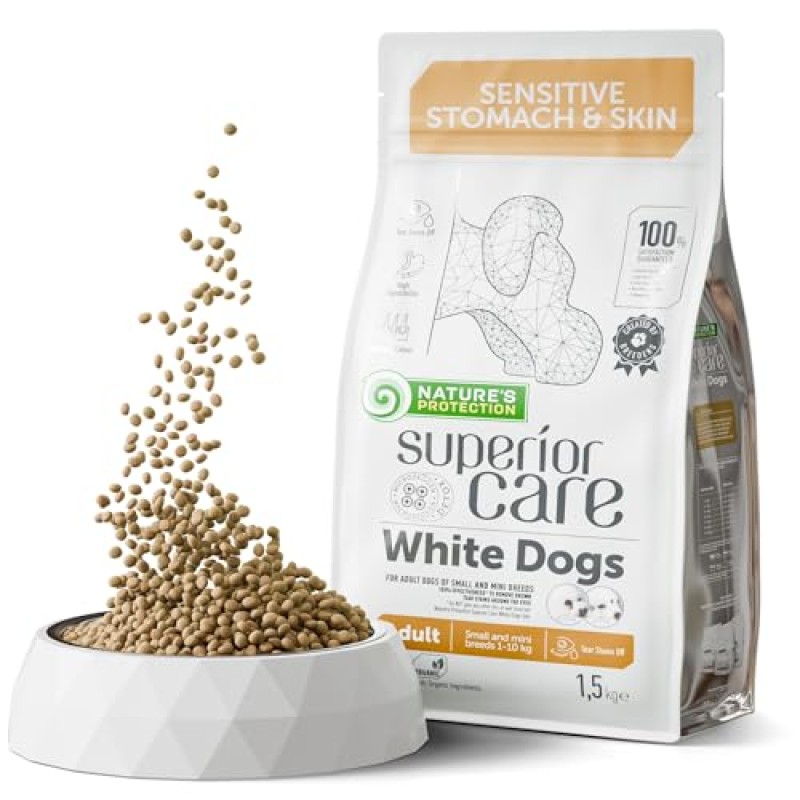 - Superior Care White Dog Food: Formulated for tear stains and sensitive tummies, this grain-free dog food supports white dogs with nutrition to reduce tear stains and maintain a beautiful coat.