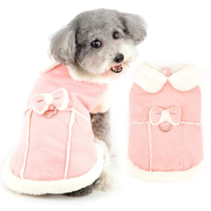 Ranphy Faux Suede Dog Coat with Bowknot and Fleece Lining