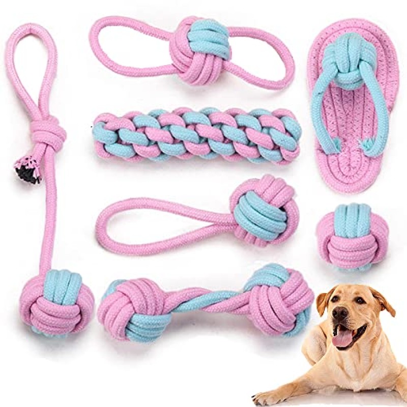 Keep your young pup happily engaged with this pack of seven natural cotton rope chew toys designed especially for puppies from 8 weeks onward and small to medium breeds. Crafted from safe, non-toxic cotton, these toys provide a gentle way to massage gums and promote healthy teeth cleaning during the teething phase. They help steer your furry friend away from chewing on furniture or other household items, turning playtime into a productive and enjoyable bonding experience.