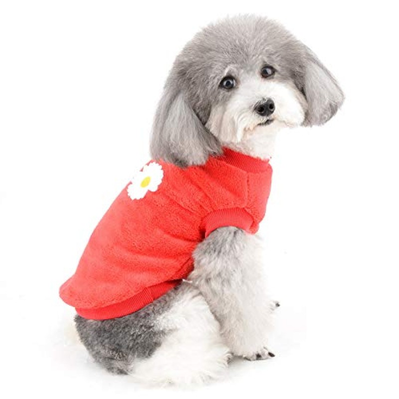 ZUNEA Small Dog Fleece Jumper and Coat with Daisy Pattern
